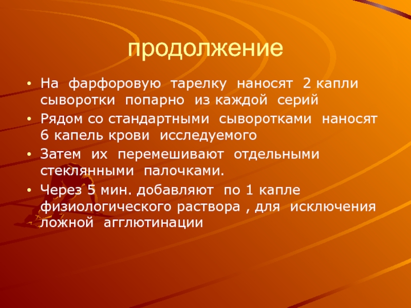 На фарфоровую тарелку наносят 2 капли сыворотки попарно из каждой