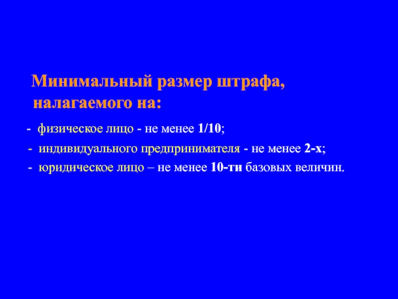 Слайд 31 Минимальный размер штрафа, налагаемого на: