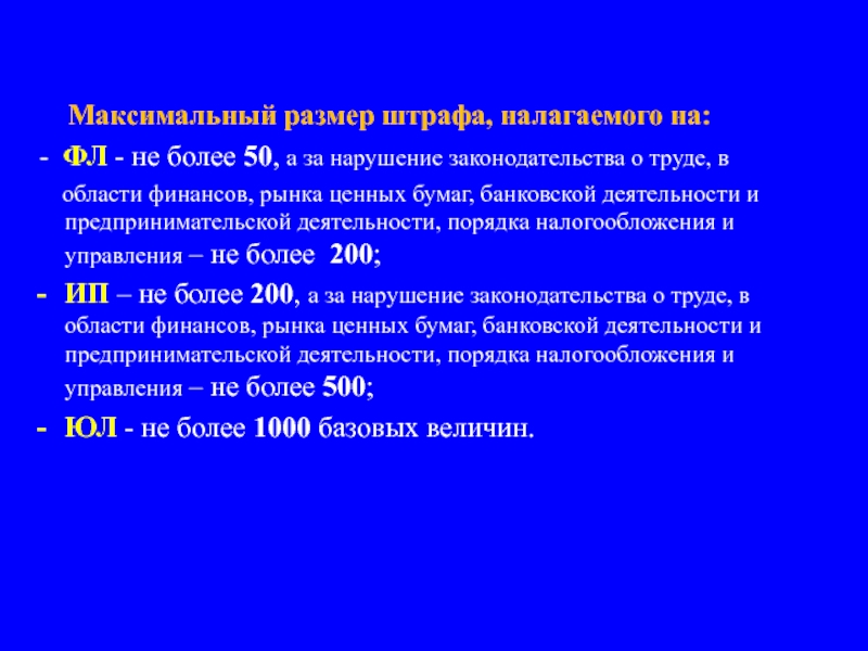 Слайд 32 Максимальный размер штрафа, налагаемого на: