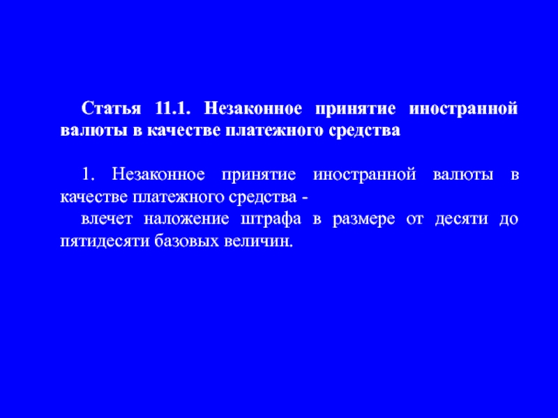 Слайд 13Статья 11.1. Незаконное принятие иностранной валюты в качестве платежного средства