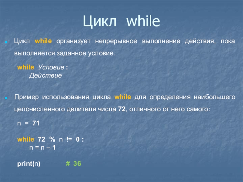 Слайд 22Цикл while