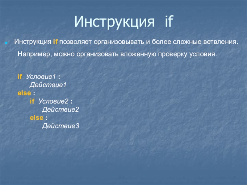 Слайд 12Инструкция if