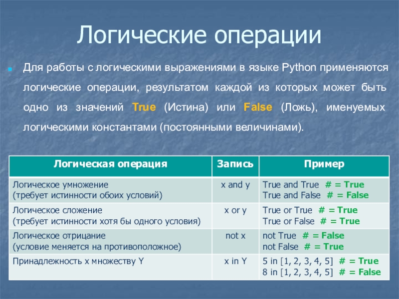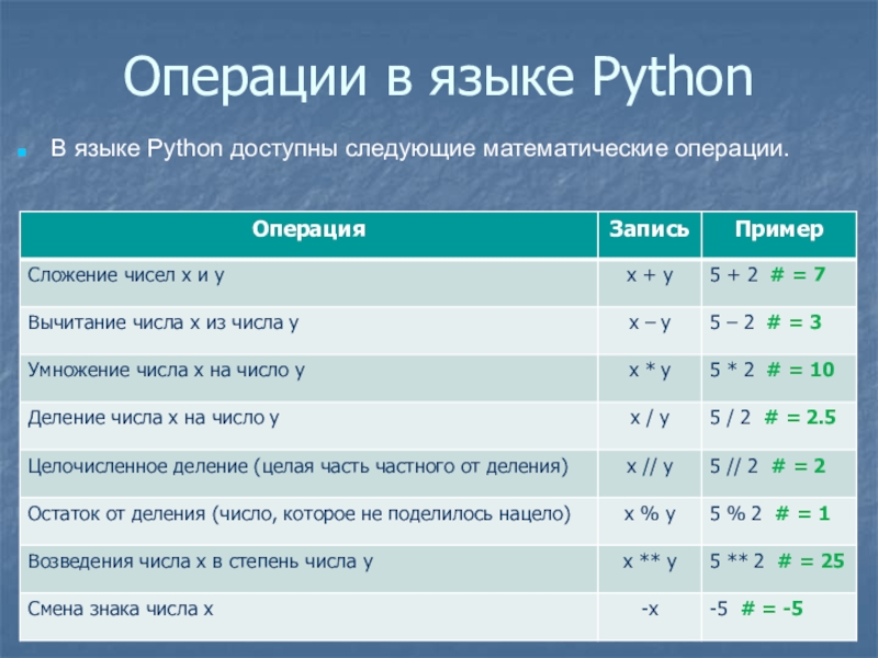 Слайд 8Операции в языке Python