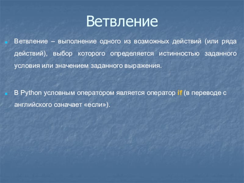 Ветвление – выполнение одного из возможных действий (или ряда действий),