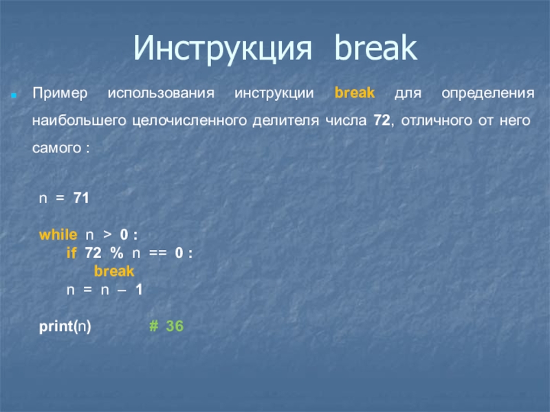 Слайд 27Инструкция break