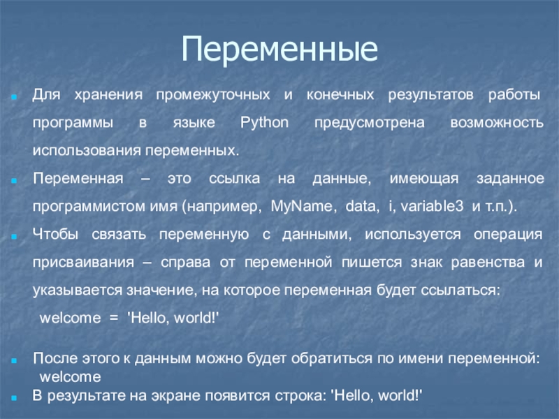 Слайд 4Переменные