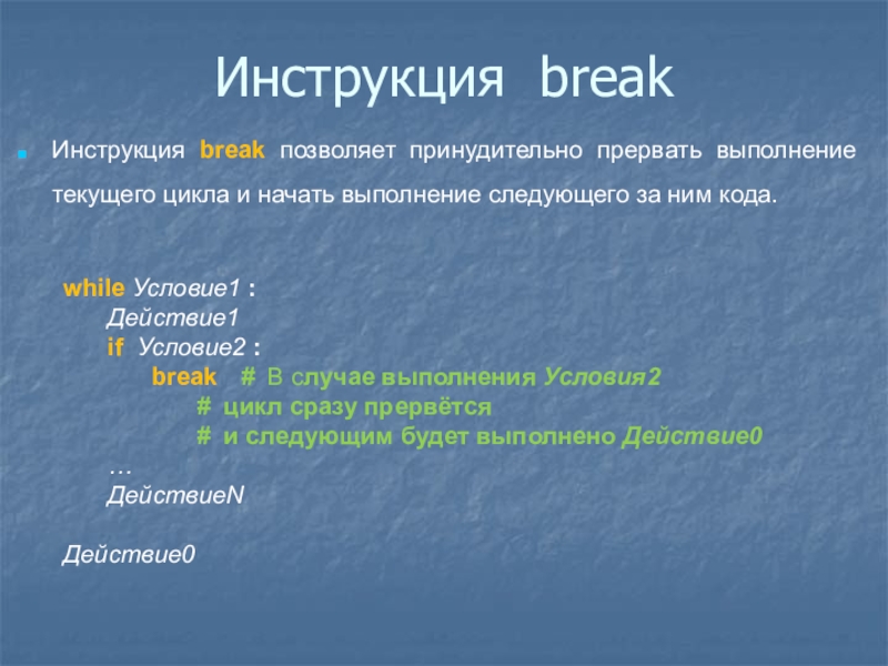 Слайд 26Инструкция break
