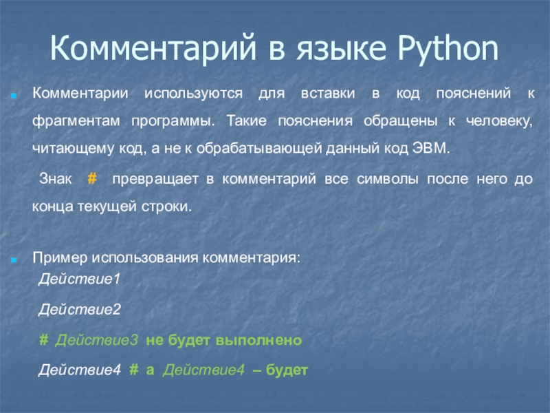 Слайд 7Комментарий в языке Python