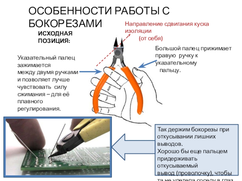 Для обрезания медной или алюминиевой проволоки, зачистки