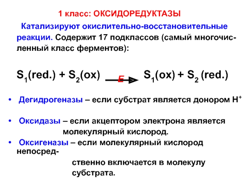 1 класс: ОКСИДОРЕДУКТАЗЫ