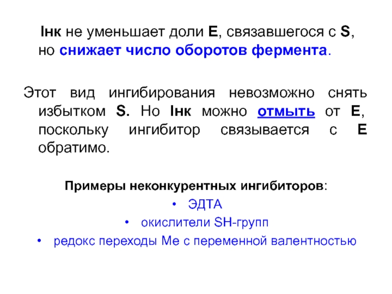 Слайд 78Неконкурентные ингибиторы, Iнк
