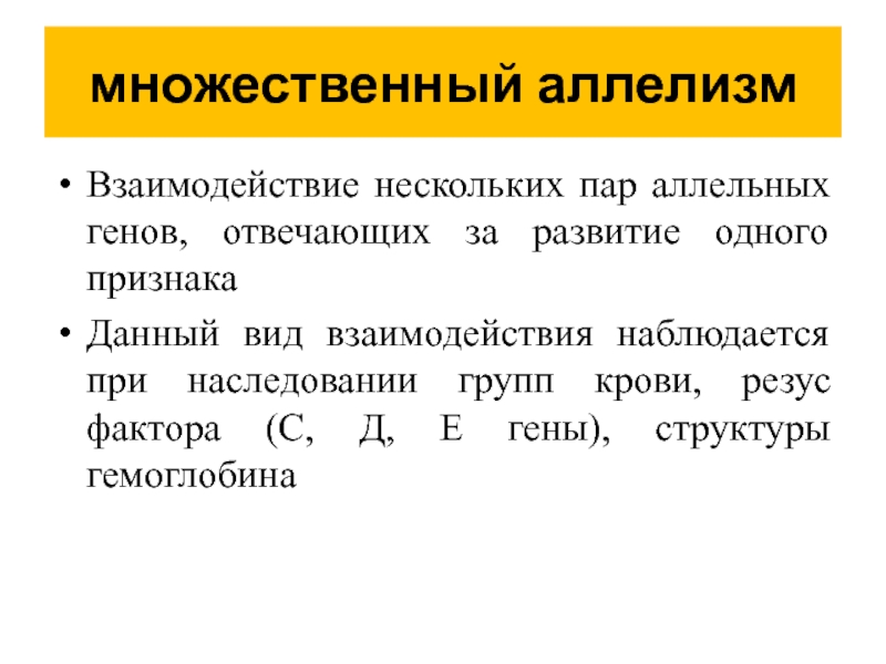 Данный вид взаимодействия наблюдается при наследовании групп крови, резус фактора