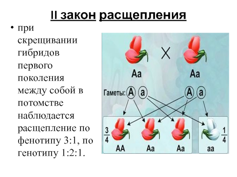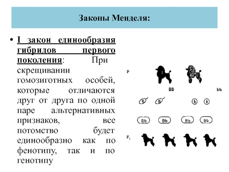 I закон единообразия гибридов первого поколения: При скрещивании гомозиготных