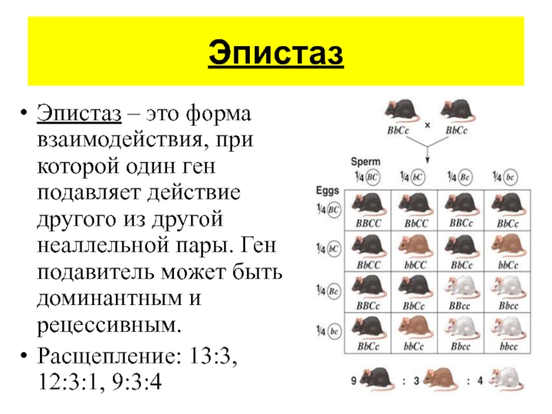 Эпистаз – это форма взаимодействия, при которой один ген подавляет