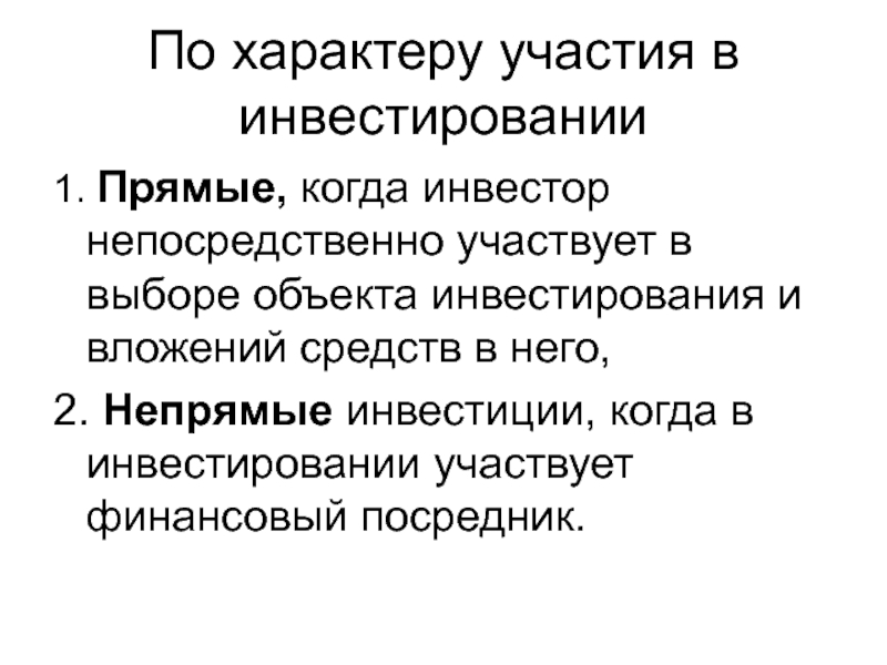 Слайд 34По характеру участия в инвестировании