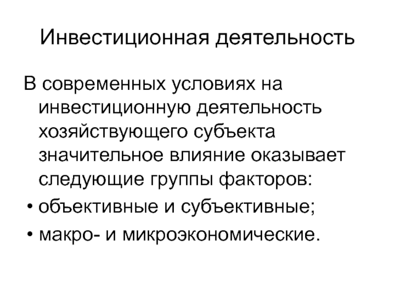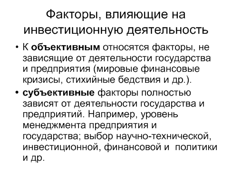 Слайд 4Факторы, влияющие на инвестиционную деятельность