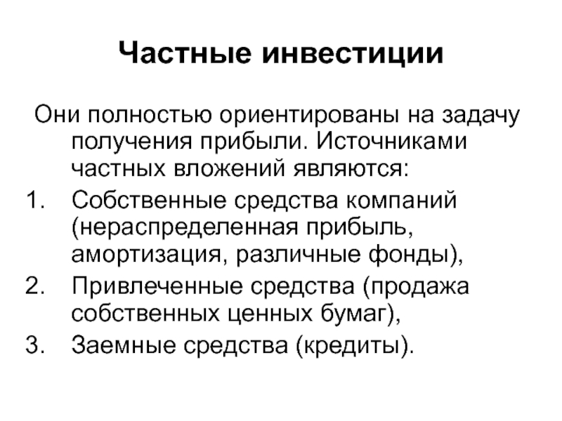 Они полностью ориентированы на задачу получения прибыли. Источниками частных