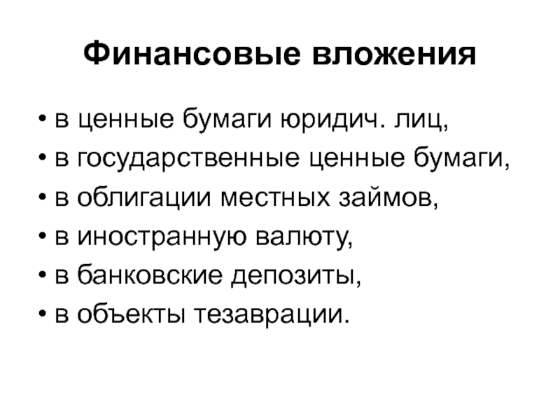 вложения в ценные бумаги.