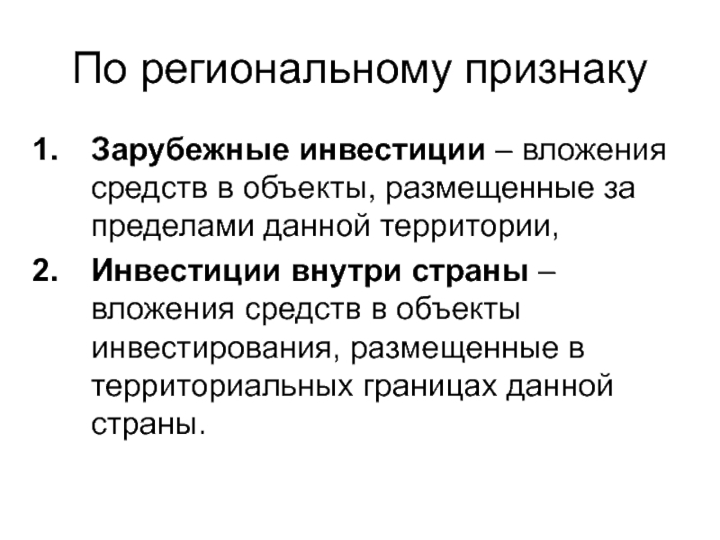 Зарубежные инвестиции – вложения средств в объекты, размещенные