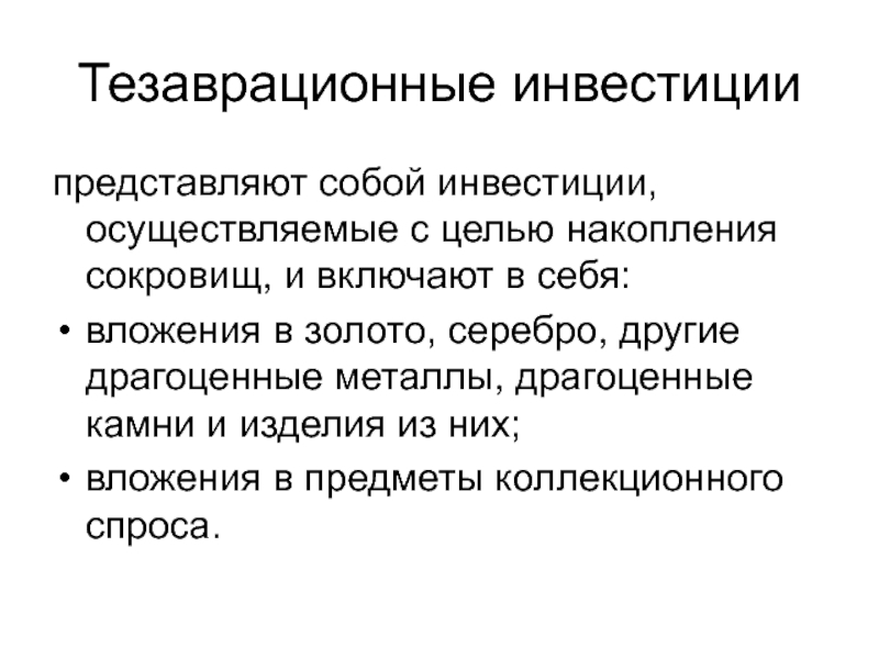 Слайд 42Тезаврационные инвестиции
