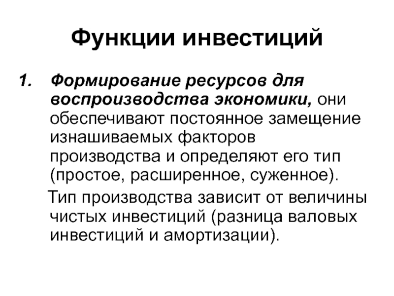 Тип производства зависит от величины чистых инвестиций (разница валовых инвестиций и амортизации).