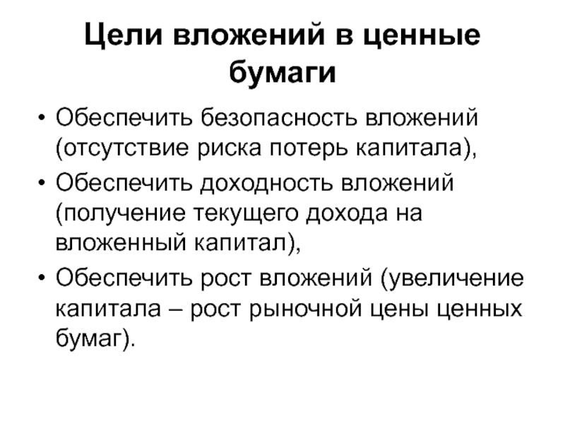 Слайд 43Цели вложений в ценные бумаги