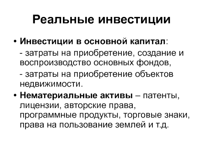 Слайд 40Реальные инвестиции