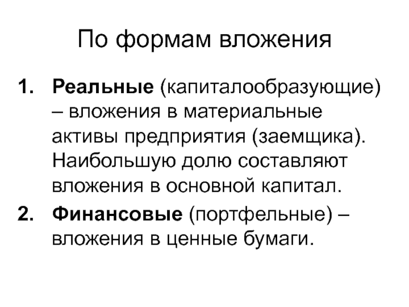 Реальные (капиталообразующие) – вложения в материальные активы предприятия