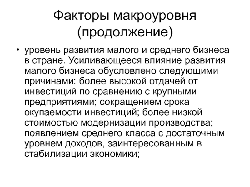 Слайд 10Факторы макроуровня (продолжение)