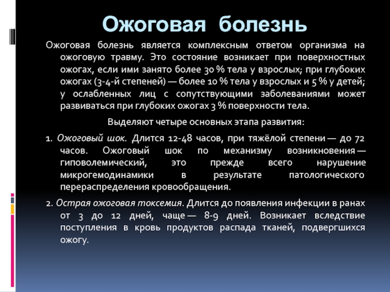 Слайд 18Ожоговая болезнь