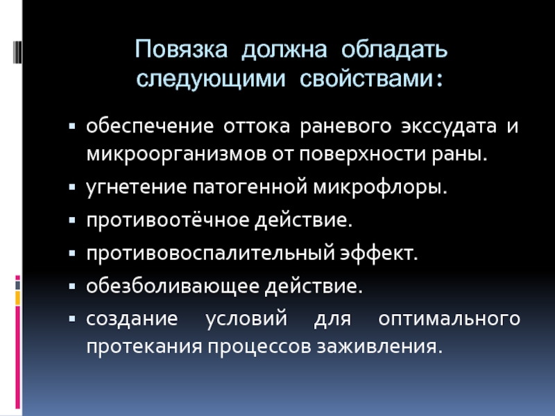 Слайд 28Повязка должна обладать следующими свойствами: