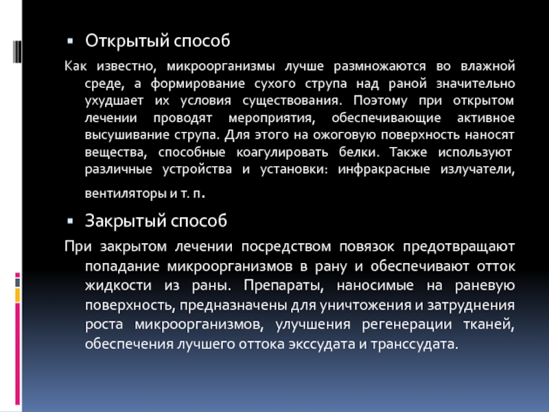 Слайд 24два основных способа местного лечения ожоговых ран