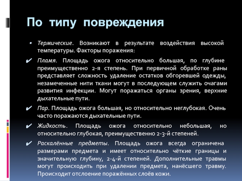 Термические. Возникают в результате воздействия высокой температуры. Факторы