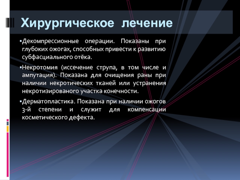 Слайд 29Декомпрессионные операции. Показаны при глубоких ожогах, способных привести к развитию