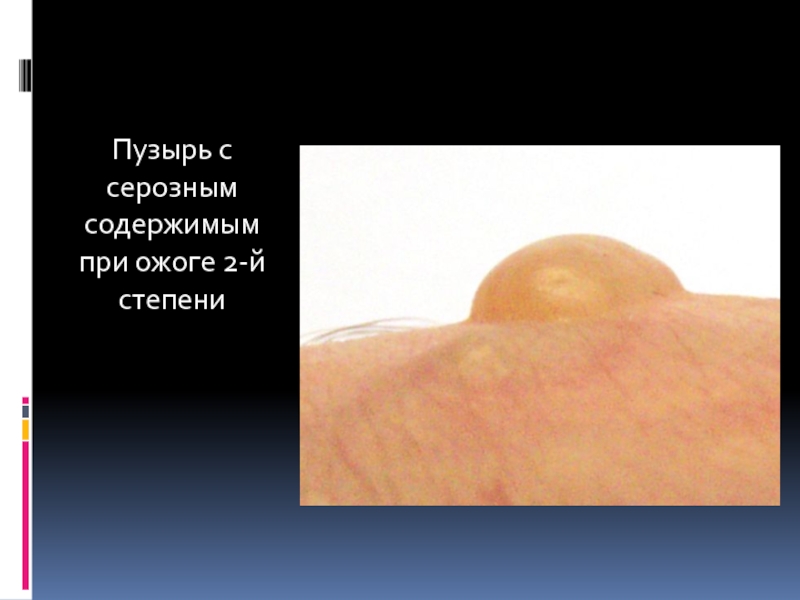 Слайд 7Пузырь с серозным содержимым при ожоге 2-й степени