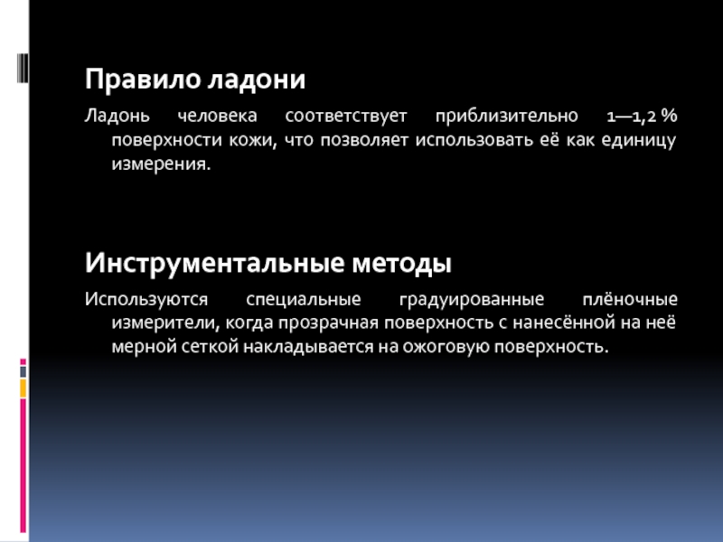 Ладонь человека соответствует приблизительно 1—1,2 % поверхности кожи, что позволяет