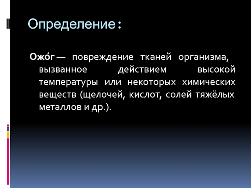 Ожо́г — повреждение тканей организма, вызванное действием высокой температуры или некоторых