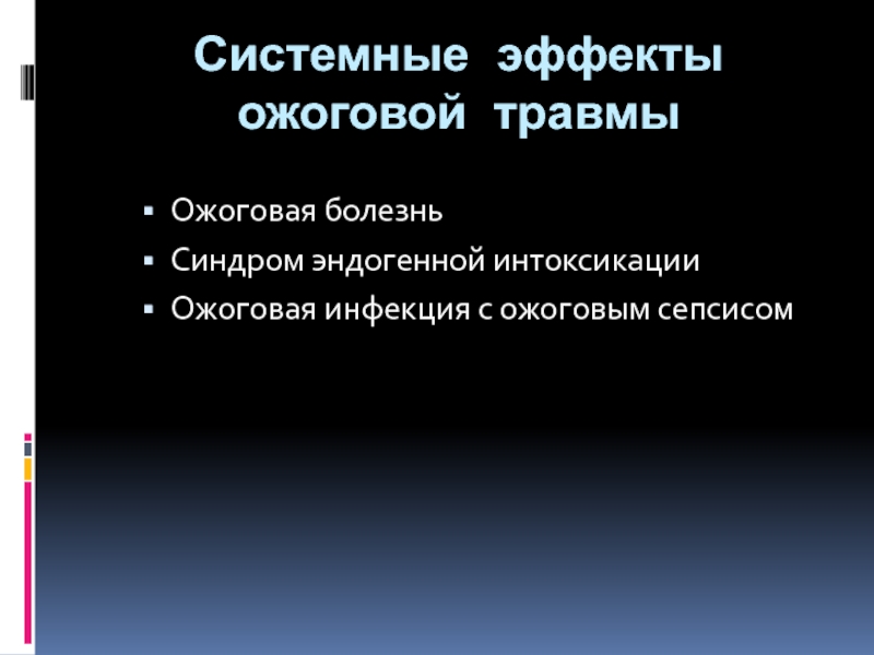 Слайд 17Системные эффекты ожоговой травмы