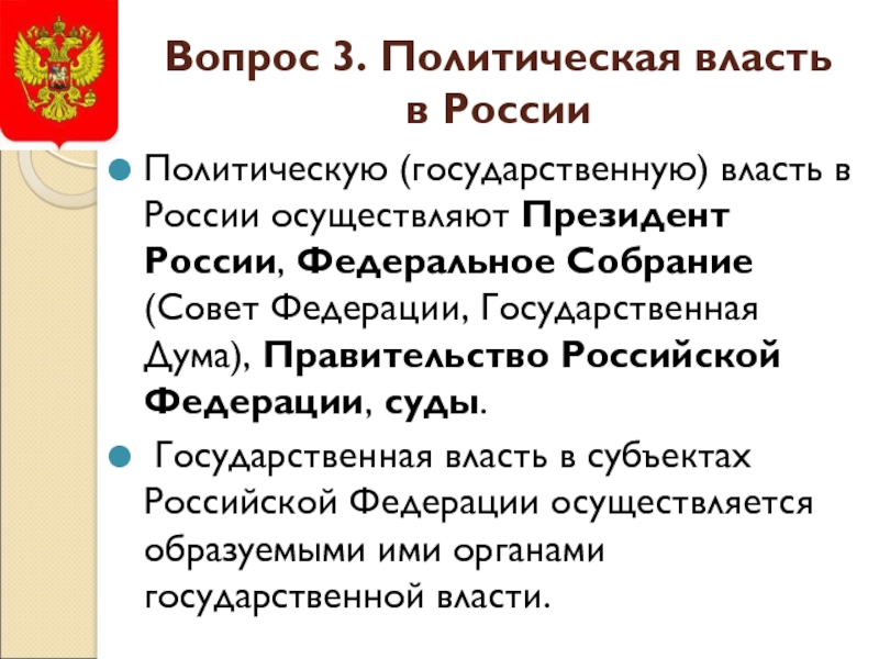 ПОЛИТИЧЕСКАЯ ВЛАСТЬ В РОССИИ.