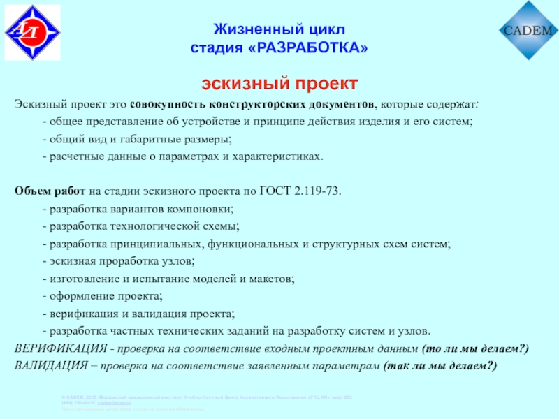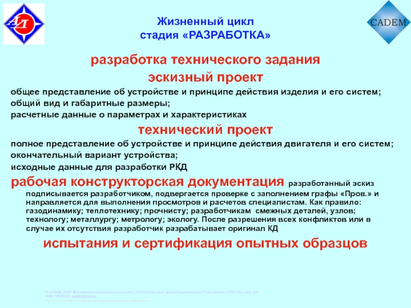 - установление требований к последующей стадии разработки;