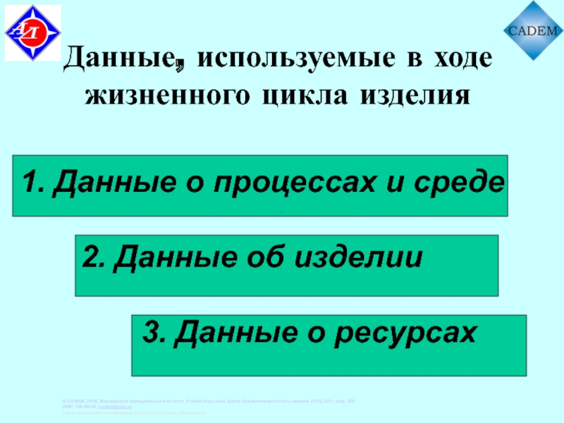 Слайд 38Данные, используемые в ходе жизненного цикла изделия