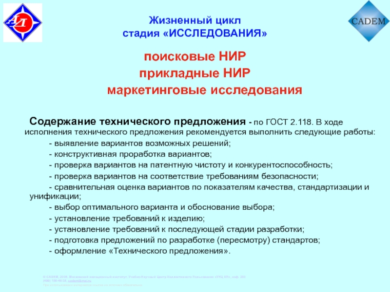 - проверка вариантов на патентную чистоту и конкурентоспособность;