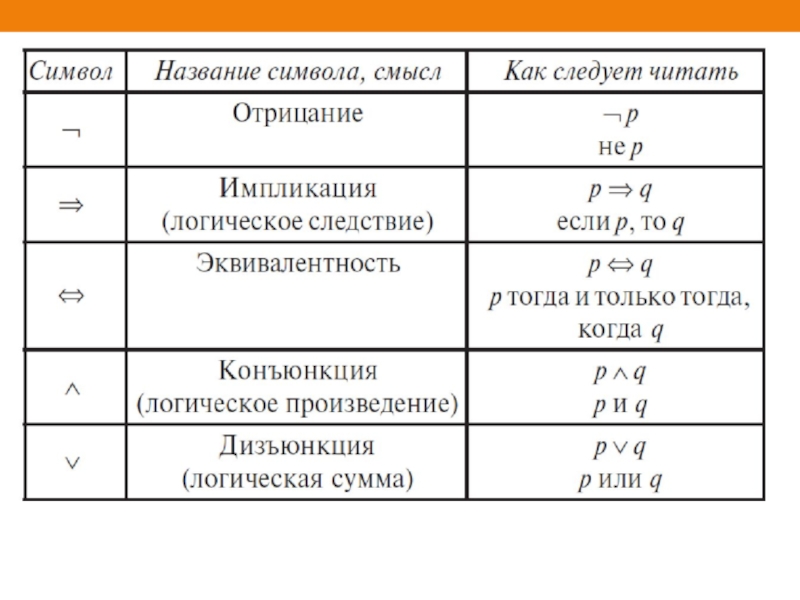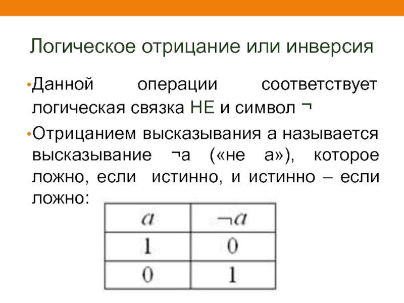 Отрицанием высказывания а называется высказывание ¬а («не а»), которое