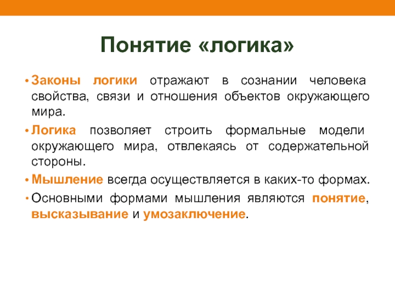 Слайд 5Законы логики отражают в сознании человека свойства, связи и отношения