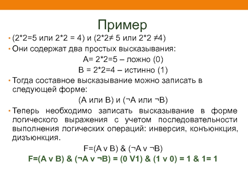 (2*2=5 или 2*2 = 4) и (2*2≠ 5 или 2*2