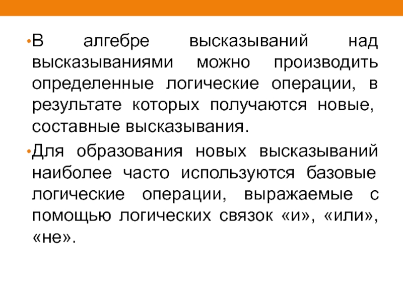 Слайд 11В алгебре высказываний над высказываниями можно производить определенные логические операции,