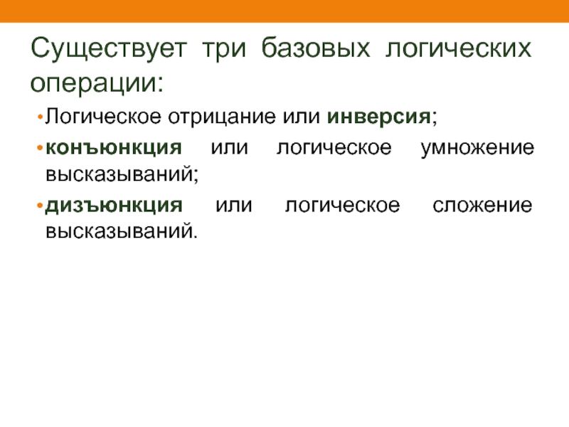 наиболее часто используются базовые логические операции, выражаемые с помощью логических связок «и», «или», «не».