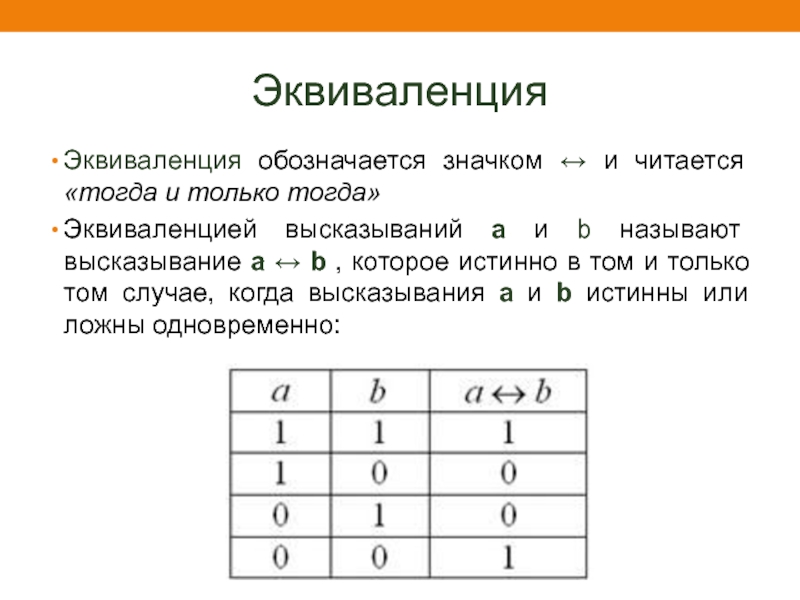 которое истинно в том и только том случае, когда высказывания a и b истинны или ложны одновременно: