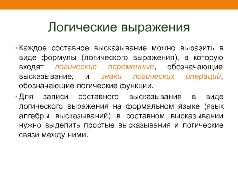 выражения), в которую входят логические переменные, обозначающие высказывание, и знаки