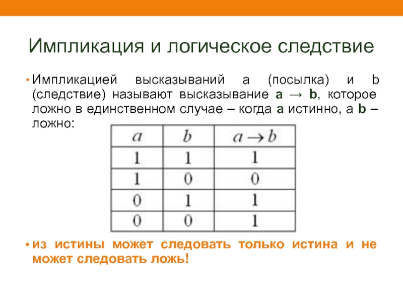 высказывание a & b, которое истинно в том и только том случае, когда истинны оба высказывания a и b: